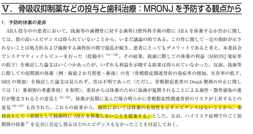 という方針でした。理由は顎骨壊死(がっこつえし)という合併症があるからです。